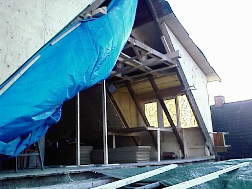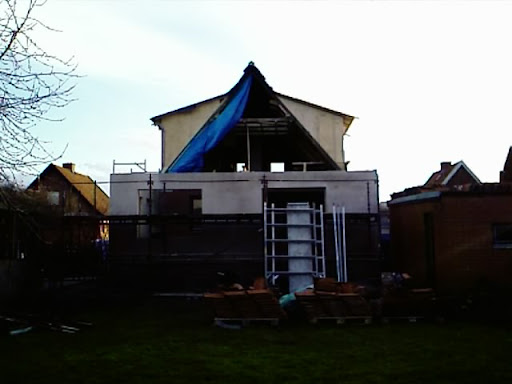 Nu när det är putsat och klart på utbyggnaden är det dags att riva fasaden på den gamla delen,