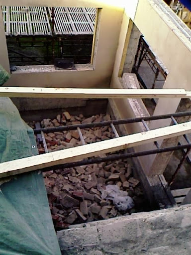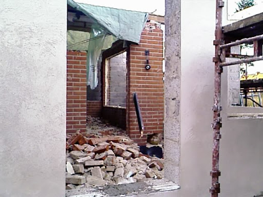 Gamla utbyggnaden rivs just nu, mycket tegelsten blir det, men det är coola bananer, för det använder vi som fyllnadsmassor:
