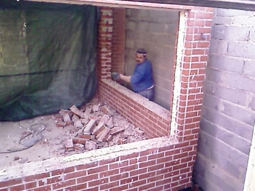 Gubbarna svär lite, tydligen har det använts cement av modell Karlssons klister för att sätta ihop gamla utbyggnaden, de har ett helsicke att få ned det.